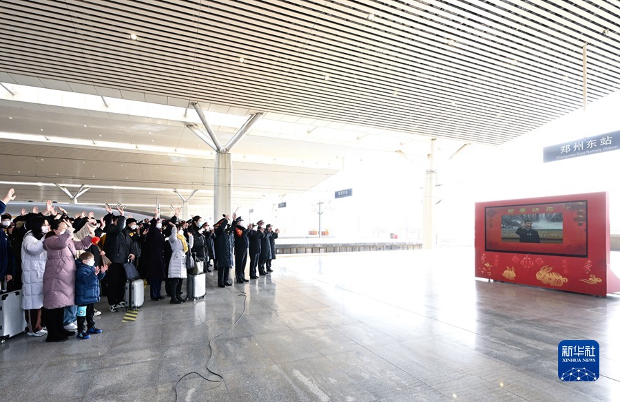 1月18日,中共中央总书记、国家主席、中央军委主席习近平在北京通过视频连线看望慰问基层干部群众,向全国各族人民致以新春的美好祝福。这是习近平通过视频连线,同郑州东站铁路客运干部职工和旅客亲切交流。新华社记者 燕雁 摄