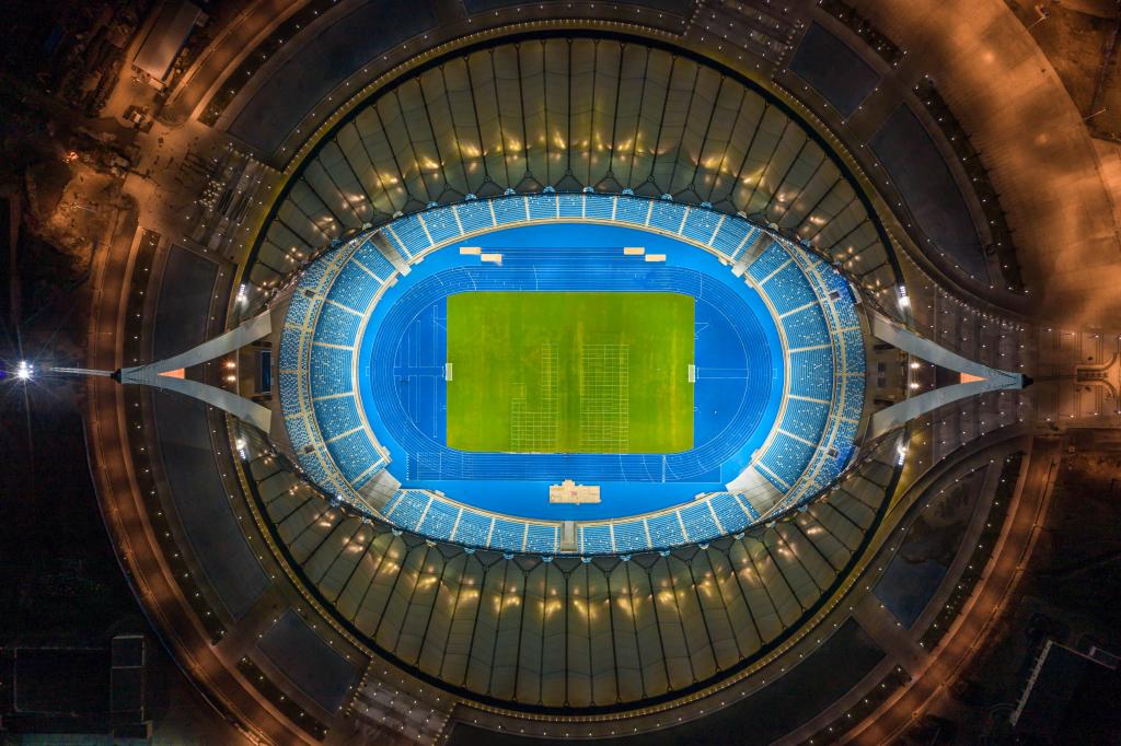 这是2021年9月9日在金边拍摄的柬埔寨国家体育场(航拍照片)。