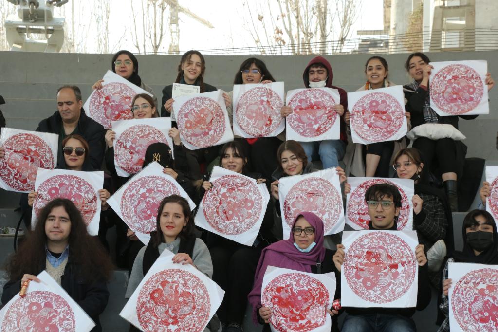 1月18日,伊朗青年学生在伊朗首都德黑兰的一处公园展示中国春节装饰品。当日,伊朗德黑兰大学孔子学院组织青年学生与中方教师一起学习传统年俗、体验中国文化,共同迎接春节到来。