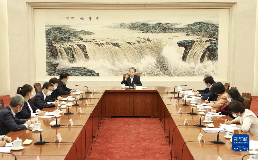 4月25日,中共中央政治局常委、全国人大常委会委员长赵乐际同列席十四届全国人大常委会第二次会议的全国人大代表座谈交流。新华社记者 庞兴雷 摄