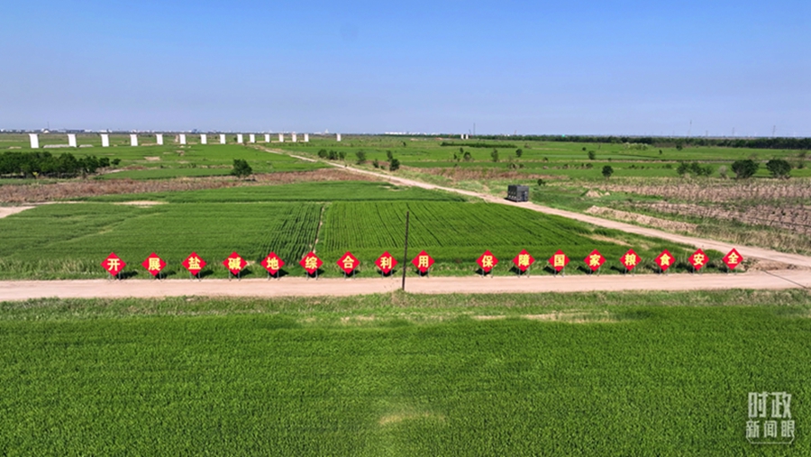 △俯瞰仙庄片区旱碱地麦田。(总台记者郭永良拍摄)