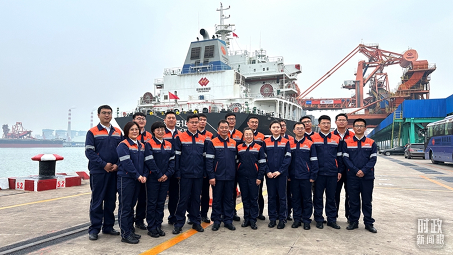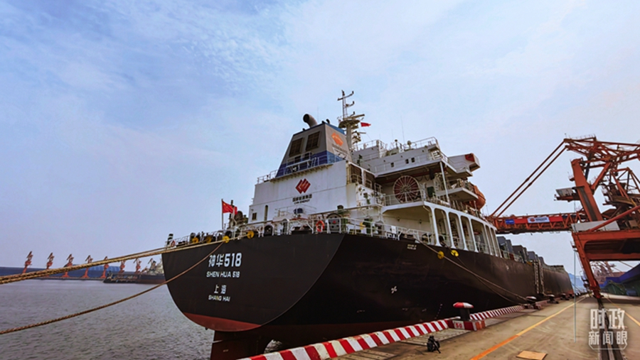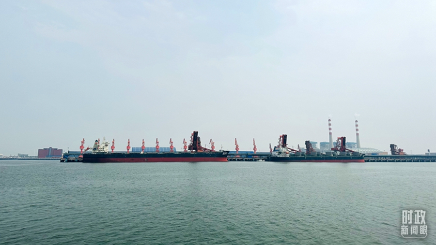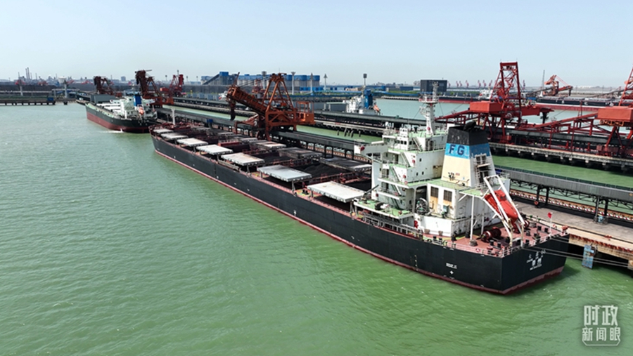 △停靠在黄骅港的神华518轮。(总台央视记者张晓鹏拍摄)
