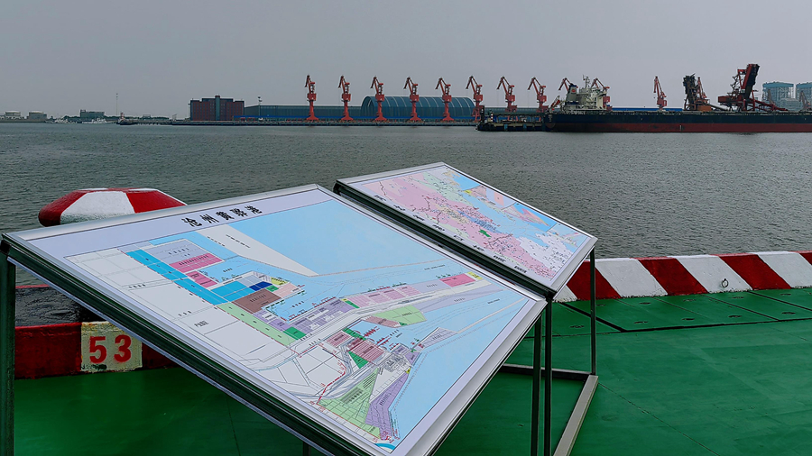 △位于渤海湾穹顶处的沧州黄骅港。(总台央视记者张晓鹏拍摄)