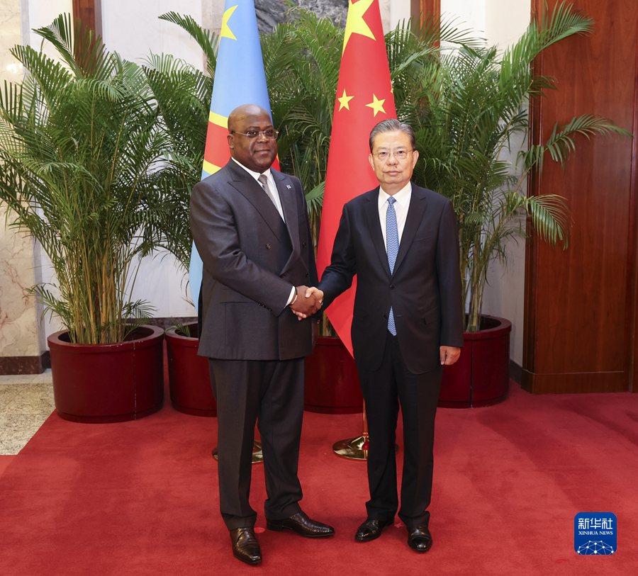 5月26日上午,全国人大常委会委员长赵乐际在北京人民大会堂会见刚果(金)总统齐塞克迪。新华社记者 庞兴雷 摄