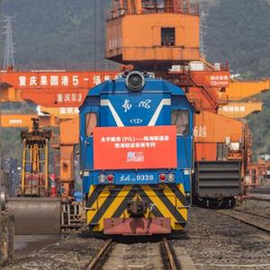 这是2023年4月27日,太平船务——西部陆海新通道江铁海联运非洲专列在重庆果园港鱼嘴站等待发车。
