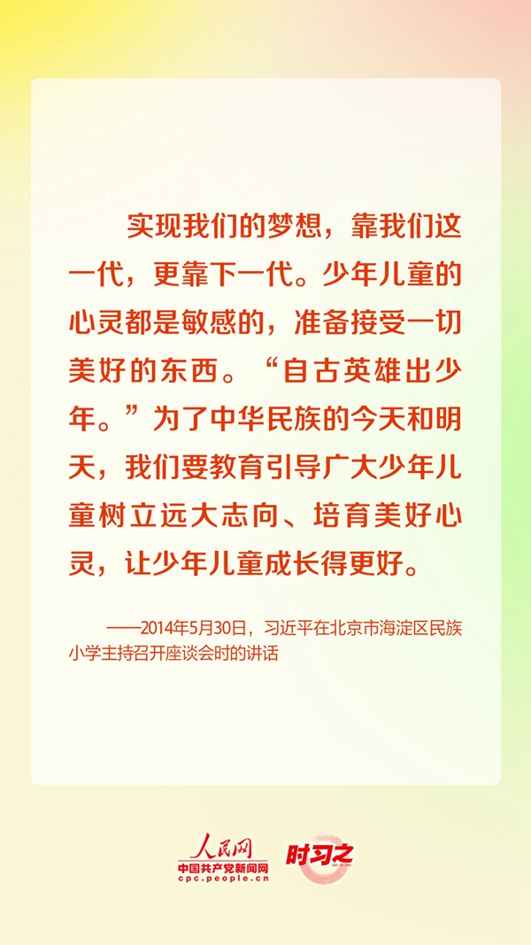 少年儿童是祖国的未来,是中华民族的希望。一直以来,习近平总书记十分关心广大少年儿童的健康成长,多次在不同场合表达对少年儿童的殷切期望与浓浓关爱。在“六一”国际儿童节来临之际,让我们共同回顾总书记对少年儿童的殷切寄语。