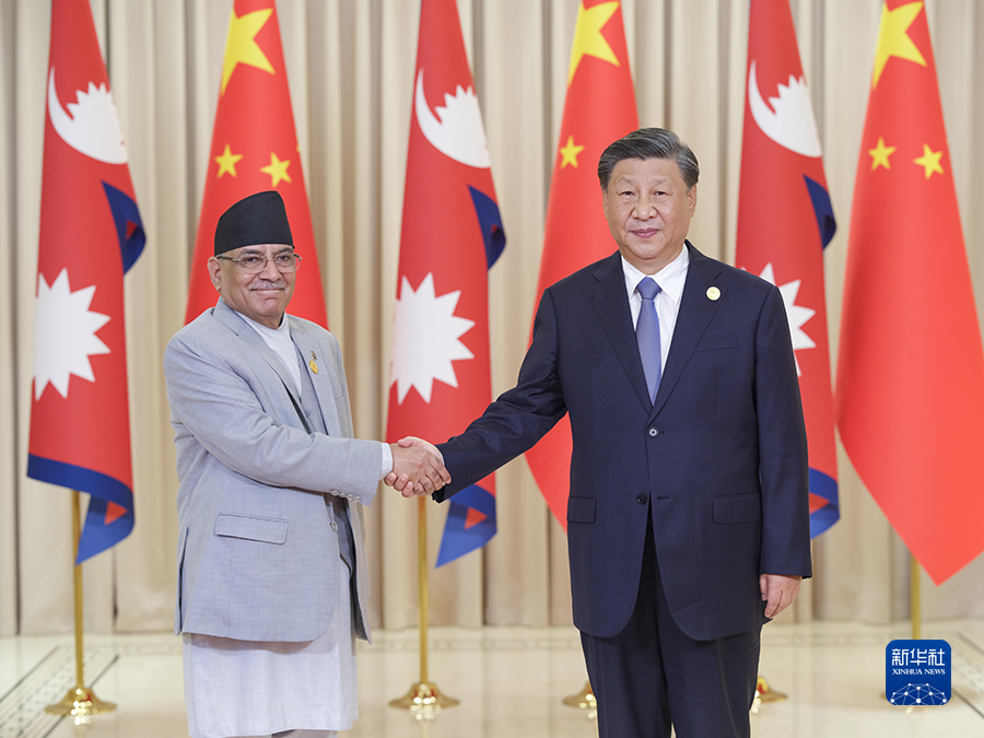 9月23日下午,国家主席习近平在杭州西湖国宾馆会见来华出席第19届亚洲运动会开幕式并进行正式访问的尼泊尔总理普拉昌达。