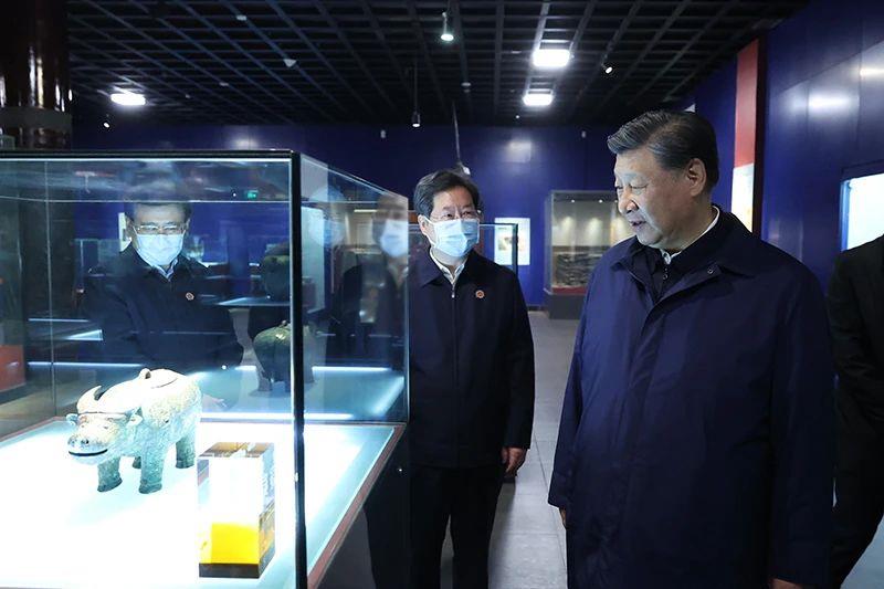 △2022年10月28日,习近平总书记在河南安阳市殷墟博物馆考察。