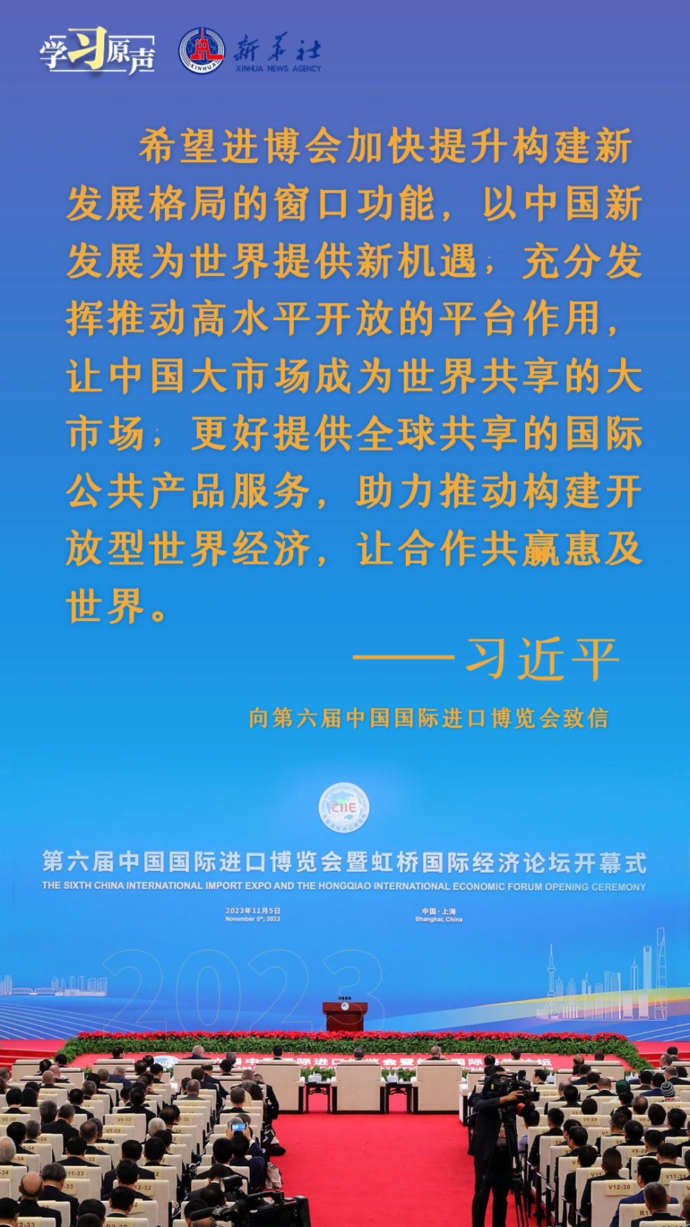 11月5日,国家主席习近平向第六届中国国际进口博览会致信。习近平强调,当前,世界经济复苏动力不足,需要各国同舟共济、共谋发展。中国将始终是世界发展的重要机遇,将坚定推进高水平开放,持续推动经济全球化朝着更加开放、包容、普惠、平衡、共赢的方向发展。