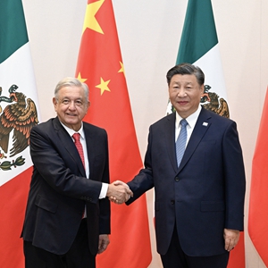 习近平强调,中方支持墨西哥独立自主走符合本国国情的发展道路,愿同墨方加强治国理政交流。中墨双边贸易额同建交时相比增长超过7000倍,在铁路、汽车、新能源等领域合作亮点纷呈。双方要用好两国政府间工作机制,深化基础设施建设等传统领域合作,拓展金融、电动汽车等新兴产业合作,深化禁毒执法合作。双方要积极支持互办文艺演出、文化展览等人文交流活动,密切多边协作,坚定维护多边主义和国际关系民主化,维护国际公平正义和发展中国家正当权益。明年是中拉论坛成立10周年。中方愿同墨方一道,推动新时代中拉关系行稳致远。