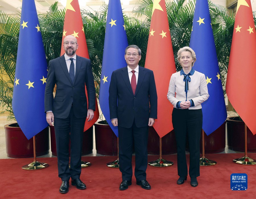李强同欧洲理事会主席米歇尔、欧盟委员会主席冯德莱恩共同主持第二十四次中国-欧盟领导人会晤