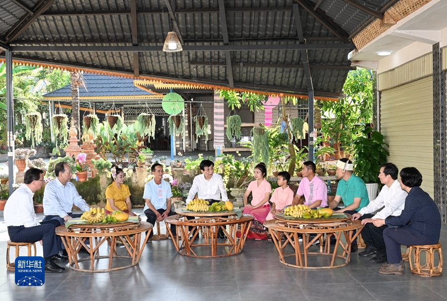 12月17日至19日,中共中央政治局常委、全国政协主席王沪宁在云南西双版纳、玉溪、昆明调研。他表示,民族宗教工作是党治国理政必须做好的重大工作,要认真学习贯彻习近平总书记关于加强和改进民族工作的重要思想、关于宗教工作的重要论述,坚持铸牢中华民族共同体意识的主线和我国宗教中国化方向,以高度责任感和使命感做好民族宗教工作,促进民族团结、宗教和顺、社会稳定。这是12月17日,王沪宁在西双版纳傣族自治州景洪市曼景罕居民小组看望傣族群众,并同当地干部群众交流。