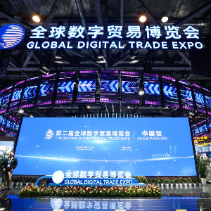 这是2023年11月23日拍摄的第二届全球数字贸易博览会综合馆中的中国馆。新华社记者 徐昱 摄