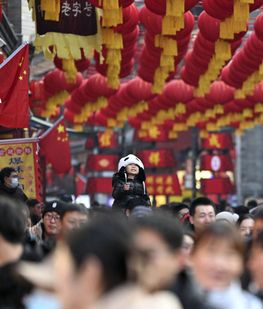 2月1日,游客在天津古文化街游览。