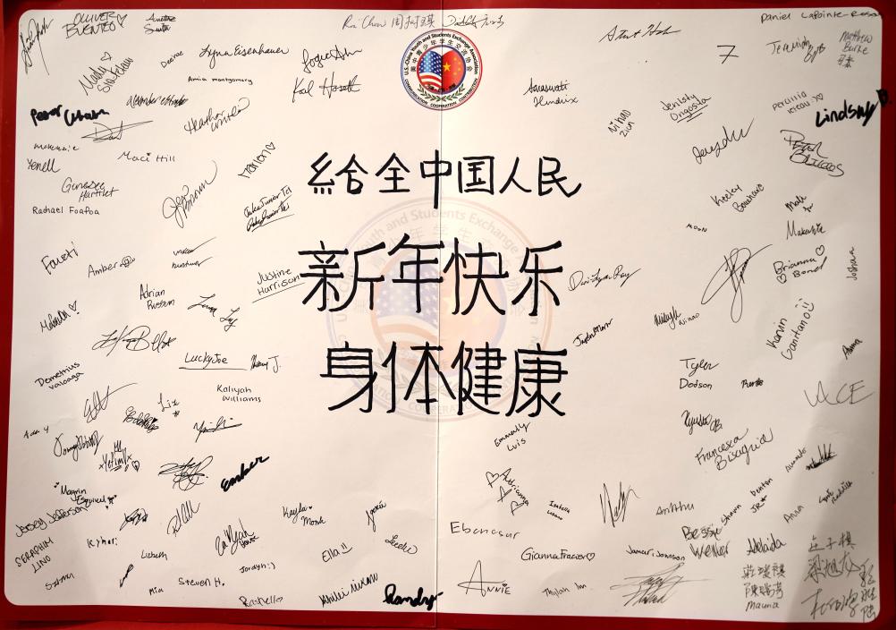图为1月30日拍摄的林肯中学师生制作的贺卡。