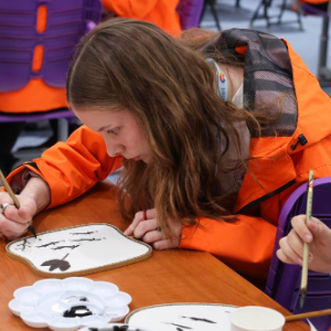 2024年3月18日,清华大学附属中学,美国华盛顿州中学生代表团的成员与中国中学生一起体验水墨画扇面绘制。新华社记者 殷刚 摄