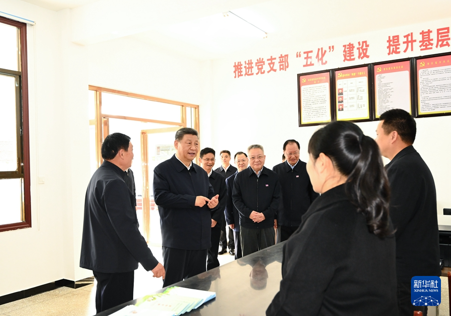 3月18日至21日,中共中央总书记、国家主席、中央军委主席习近平在湖南考察。这是19日下午,习近平在常德市鼎城区谢家铺镇港中坪村党群服务中心了解当地为基层减负、提升基层治理效能等情况。