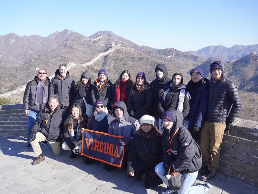 2024年1月7日,弗吉尼亚大学乒乓球代表团在长城合影。(受访者供图)