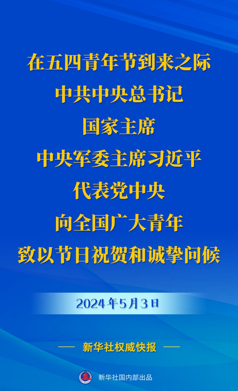 新华社权威快报 | 在五四青年节到来之际,中共中央总书记、国家主席、中央军委主席习近平代表党中央,向全国广大青年致以节日祝贺和诚挚问候。-新华网