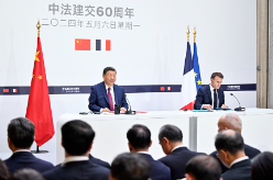 当地时间5月6日下午,国家主席习近平在巴黎爱丽舍宫同法国总统马克龙会谈后共同会见记者。