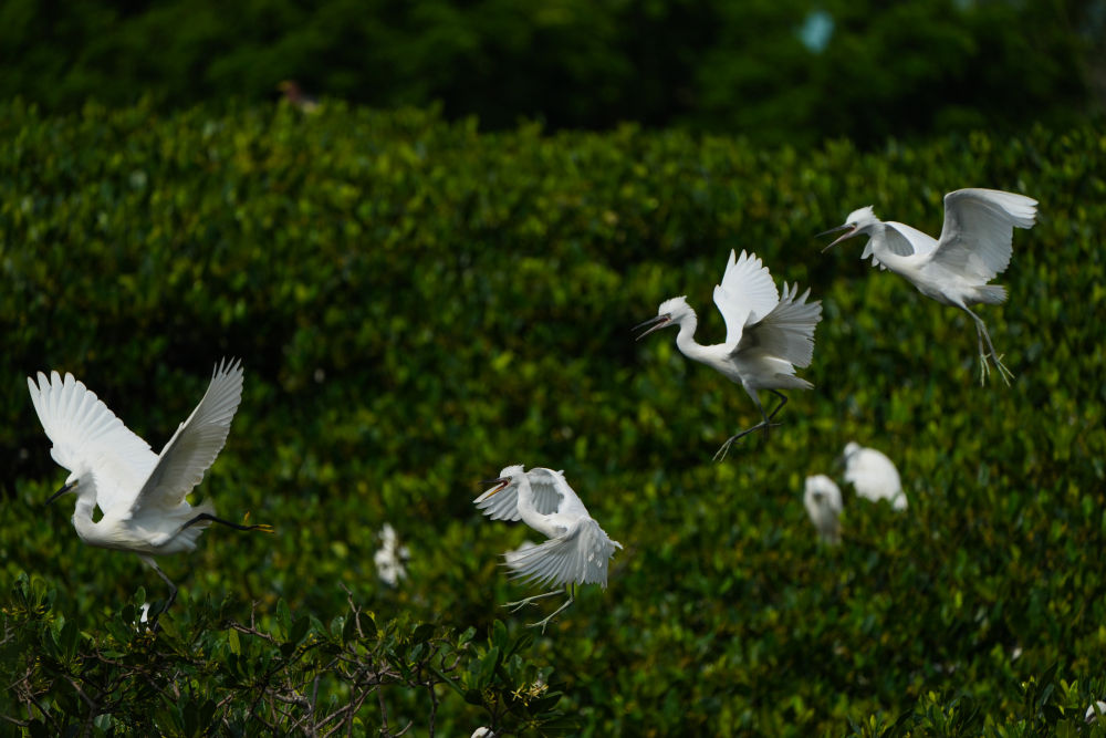 在广东湛江霞山区观海长廊一带的红树林里栖息的鸟类(2023年5月25日摄)。