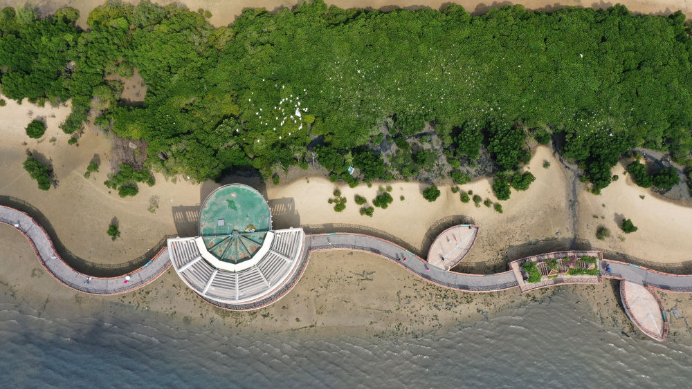 俯瞰广东湛江市区海边的红树林(2023年5月25日摄,无人机照片)。