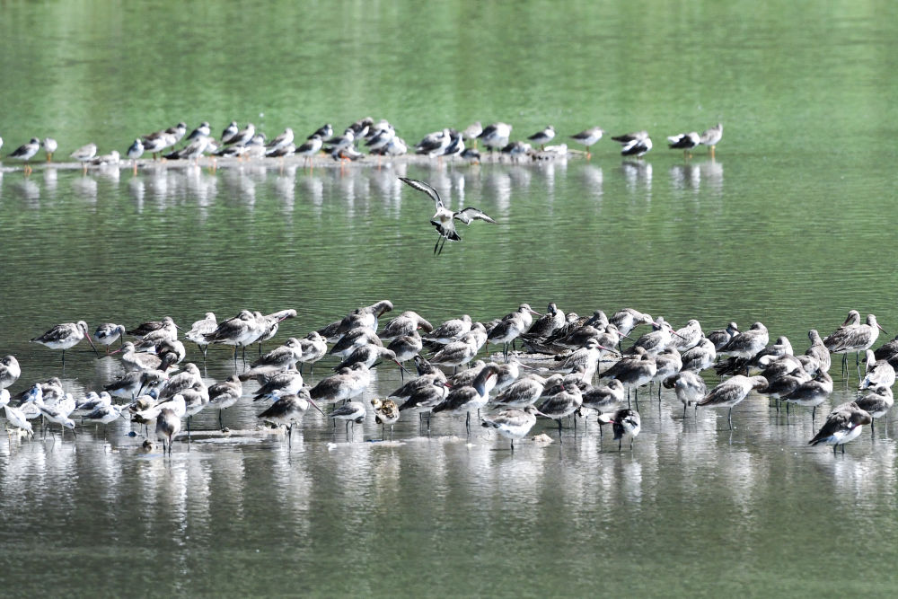 候鸟在深圳福田红树林湿地休憩(2023年10月13日摄)。