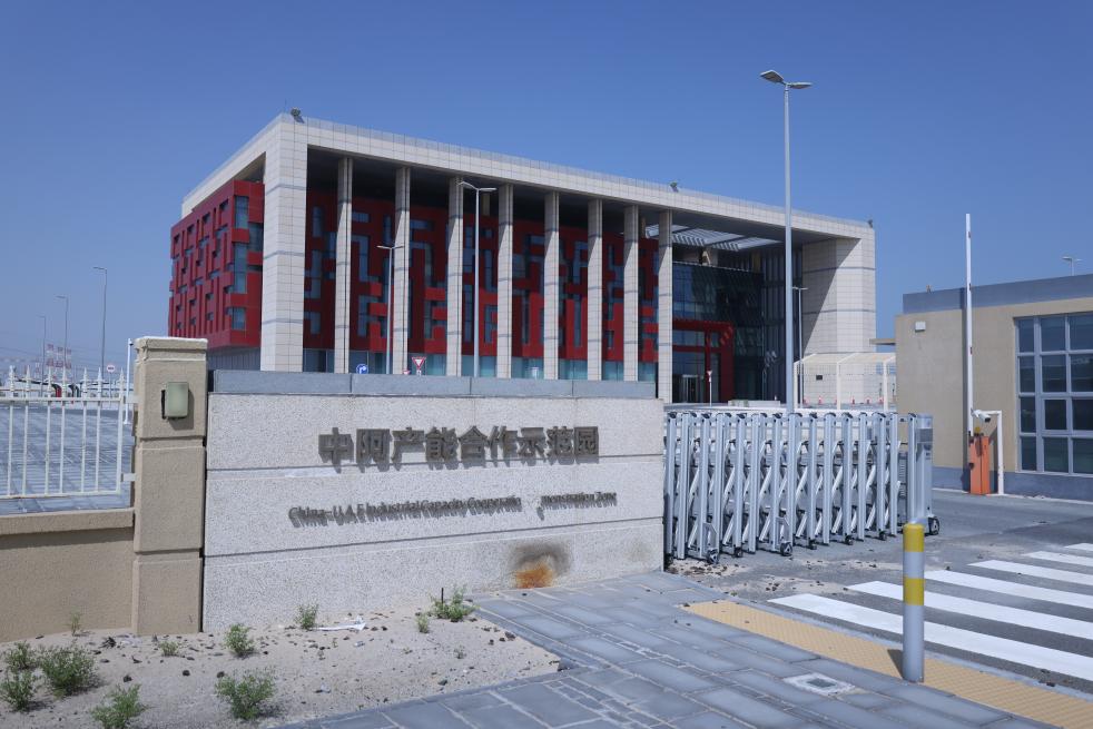 这是5月21日拍摄的中阿产能合作示范园管理服务中心大楼外景。