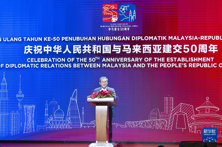 李强同马来西亚总理安瓦尔共同出席庆祝中马建交50周年暨“中马友好年”招待会-新华网