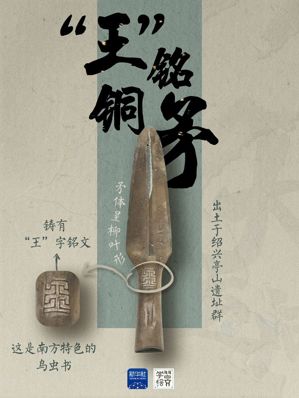 这件青铜矛有着春秋战国时期吴越地区青铜矛的典型特征。在绍兴亭山遗址群,还发现了春秋战国时高等级礼制性公共建筑、祭祀坑等众多遗迹,全方位揭示了越国核心区域舟楫纵横、国富兵强的动人场景。