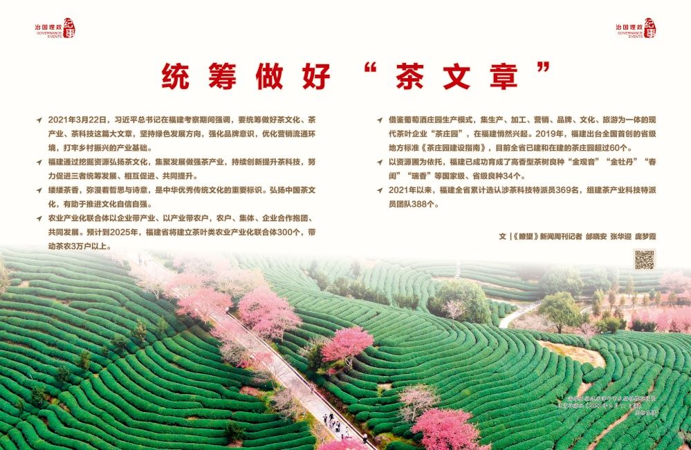 ◇福建通过挖掘资源弘扬茶文化,集聚发展做强茶产业,持续创新提升茶科技,努力促进三者统筹发展、相互促进、共同提升。