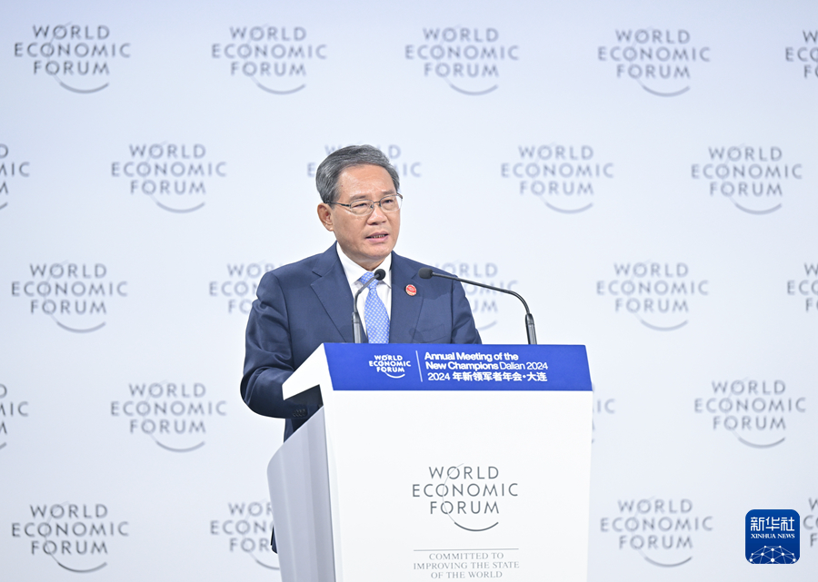 6月25日,国务院总理李强在大连出席2024年夏季达沃斯论坛开幕式并致辞。新华社记者 李响 摄
