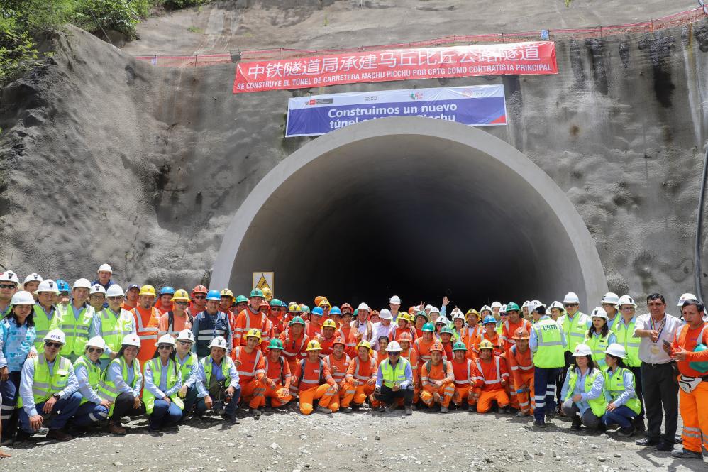 这是1月23日拍摄的秘鲁马丘比丘公路隧道项目贯通仪式现场。