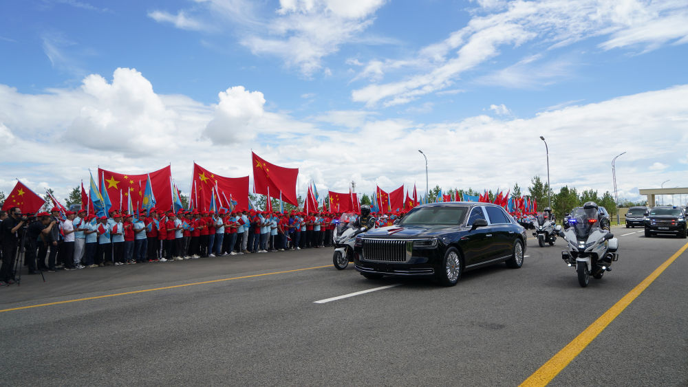 哈方在机场举行隆重欢迎仪式,哈萨克斯坦少年儿童用中文演唱《歌唱祖国》。习近平乘车从机场赴下榻饭店途中,当地中资企业代表等候在道路两旁,挥舞中哈两国国旗,高举“热烈欢迎习近平主席访问哈萨克斯坦”等红色横幅,热烈欢迎习近平主席到访。
