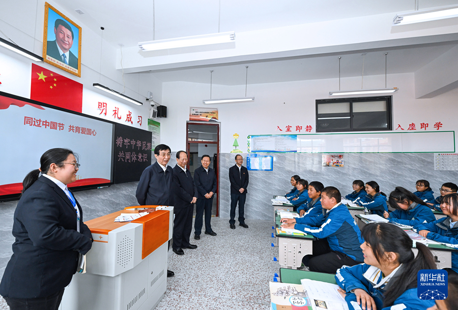 7月1日至3日,中共中央政治局常委、全国政协主席王沪宁在四川甘孜、阿坝调研。这是7月3日王沪宁在阿坝县中学了解开展爱国主义教育和民族团结进步教育情况。