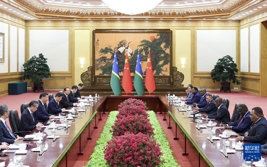 7月12日下午,国家主席习近平在北京人民大会堂会见来华进行正式访问的所罗门群岛总理马内莱。