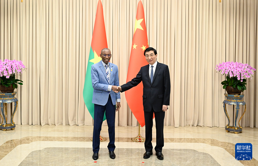 9月4日,全国政协主席王沪宁在北京会见来华出席中非合作论坛北京峰会的布基纳法索总理基耶朗。新华社记者 申宏 摄