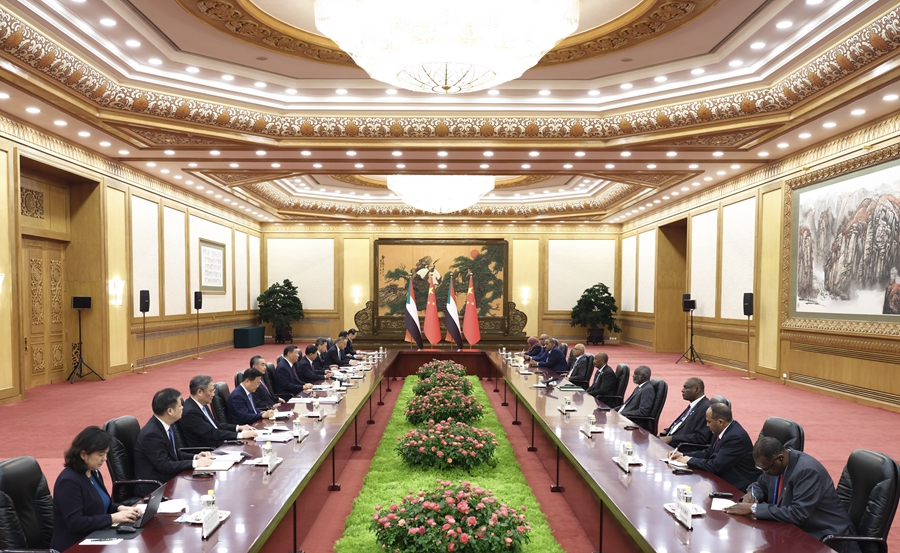9月6日下午,国家主席习近平在北京人民大会堂会见来华出席中非合作论坛北京峰会的苏丹主权委员会主席布尔汉。新华社记者 丁林 摄