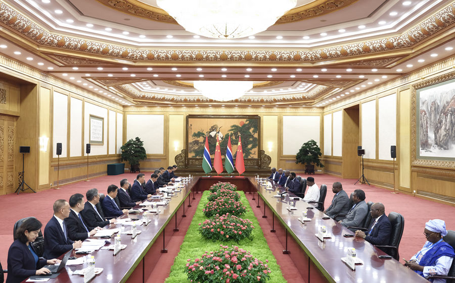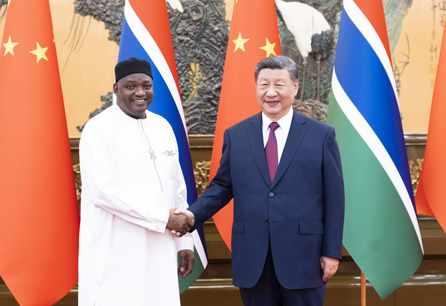 9月6日下午,国家主席习近平在北京人民大会堂会见来华出席中非合作论坛北京峰会的冈比亚总统巴罗。