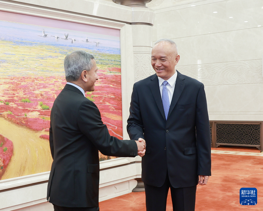 9月9日,中共中央政治局常委、中央书记处书记蔡奇在北京会见由新加坡人民行动党中央外事委员会主席、政府外长维文率领的人民行动党代表团。