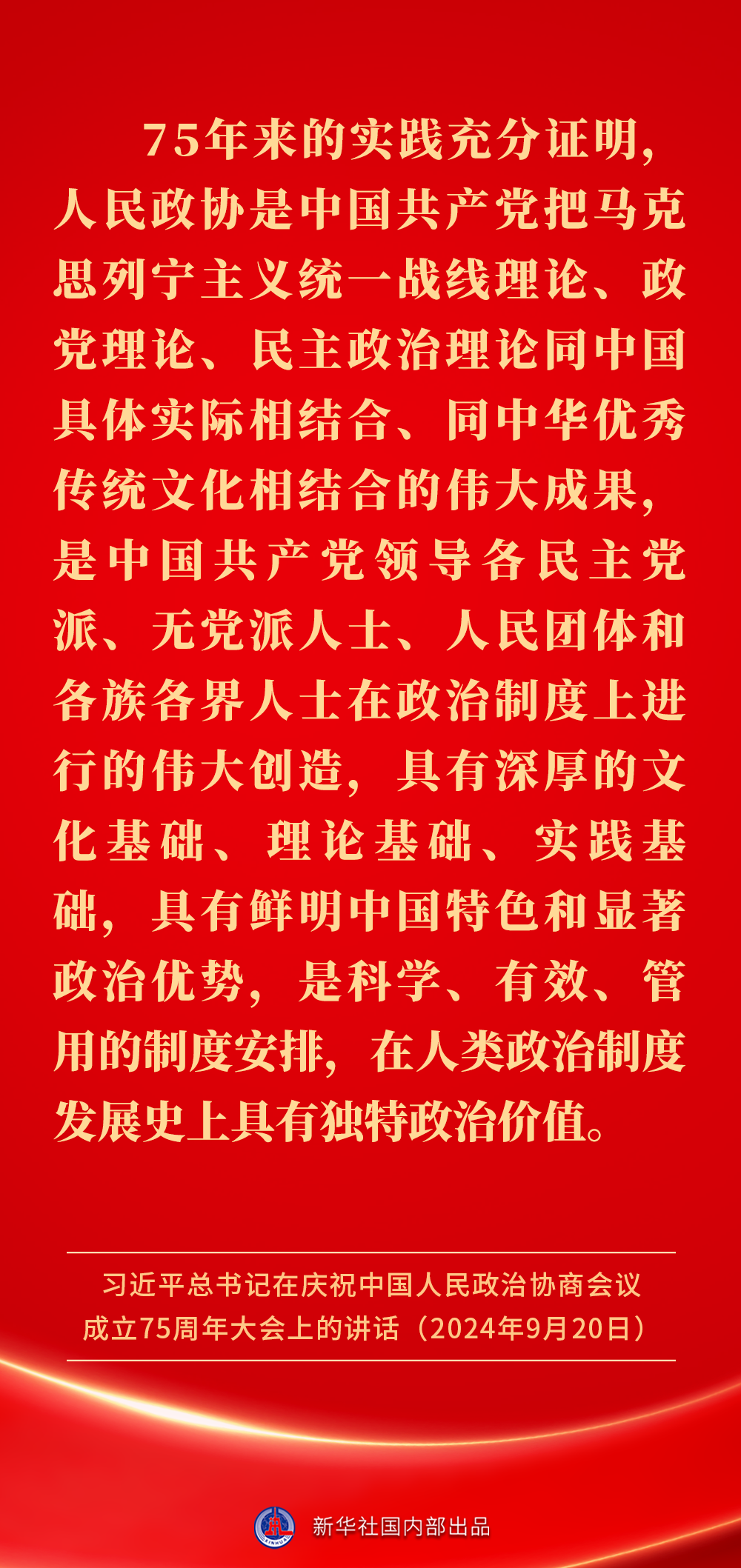 庆祝中国人民政治协商会议成立75周年大会9月20日上午在北京举行。习近平总书记出席大会并发表重要讲话。