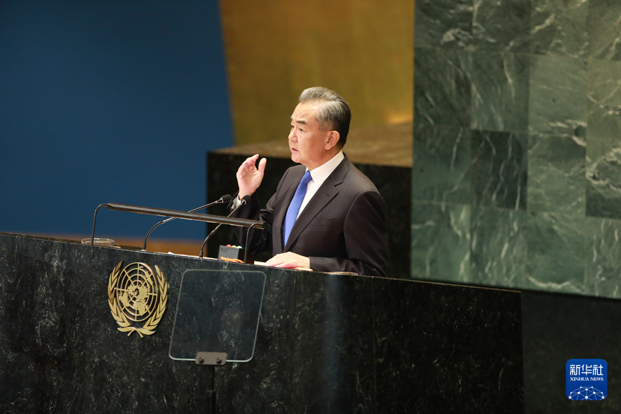 当地时间9月23日,习近平主席特别代表、中共中央政治局委员、外交部长王毅在纽约出席联合国未来峰会,发表题为《把握共同命运 共创美好未来》的致词。新华社记者 谢锷 摄
