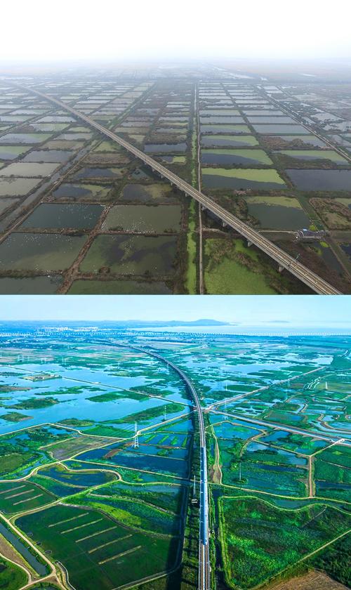 拼版图片:图为2011年和2023年鄱阳湖区的变化,曾经湖区内分布有捕鸟网,如今人与自然和谐共生的理念深入人心。摄影:傅建斌 周海燕 制作:贾稀荃