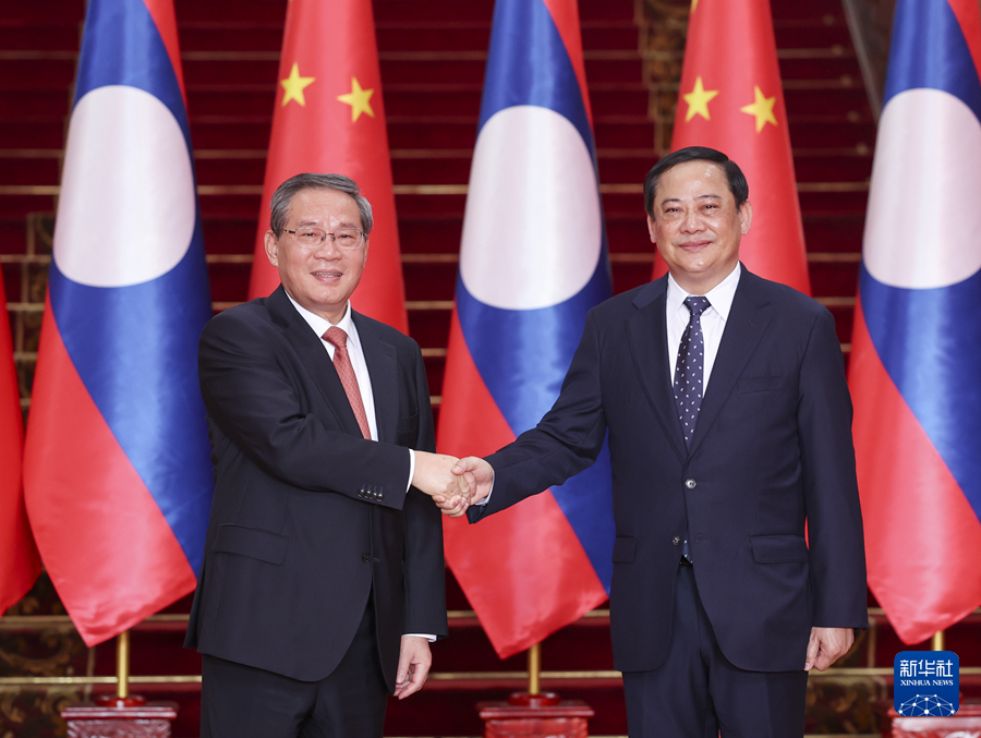 当地时间10月12日,国务院总理李强在老挝总理府同老挝总理宋赛举行会谈。
