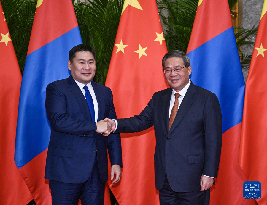 李强表示,近年来,在两国元首战略引领下,中蒙关系保持稳健发展势头。上个月,习近平主席同呼日勒苏赫总统互致庆祝建交贺电,一致同意双方继续携手努力,推动两国关系行稳致远。中方高度重视同蒙古国的友好合作,把中蒙关系置于周边外交的重要位置,愿同蒙方一道落实两国元首重要共识,以构建中蒙命运共同体为引领,赓续传统友谊,巩固政治互信,深化务实合作,持续增进两国人民福祉。