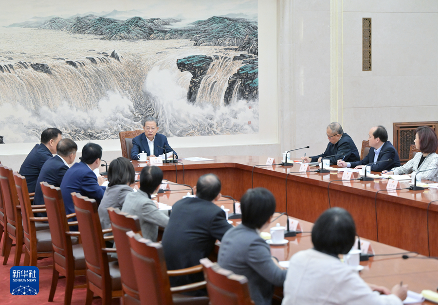 11月6日上午,中共中央政治局常委、全国人大常委会委员长赵乐际同列席十四届全国人大常委会第十二次会议的全国人大代表座谈交流。新华社记者 高洁 摄