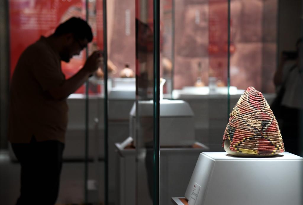 2023年6月10日,观众在陕西历史博物馆参观展出的秘鲁文物。新华社记者 李一博 摄