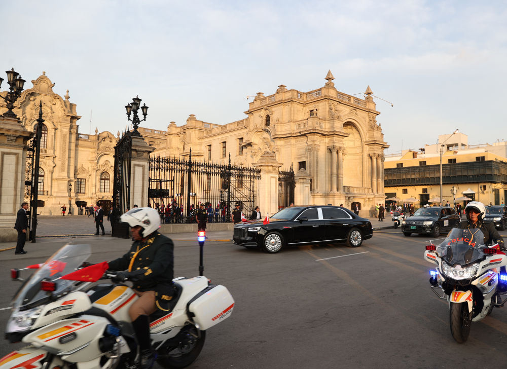 当地时间11月14日,国家主席习近平在利马出席秘鲁总统博鲁阿尔特举行的欢迎仪式。
