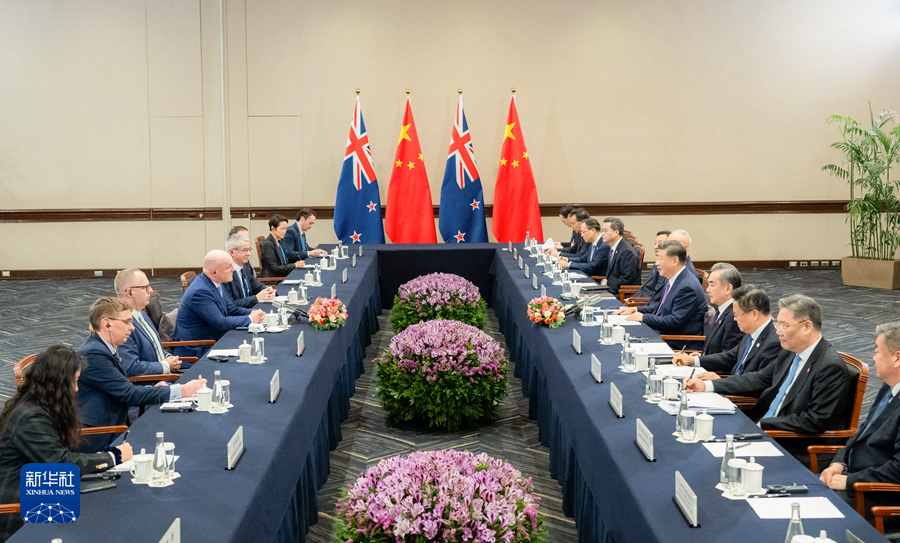 当地时间11月15日下午,国家主席习近平在利马出席亚太经合组织领导人非正式会议期间会见新西兰总理拉克森。