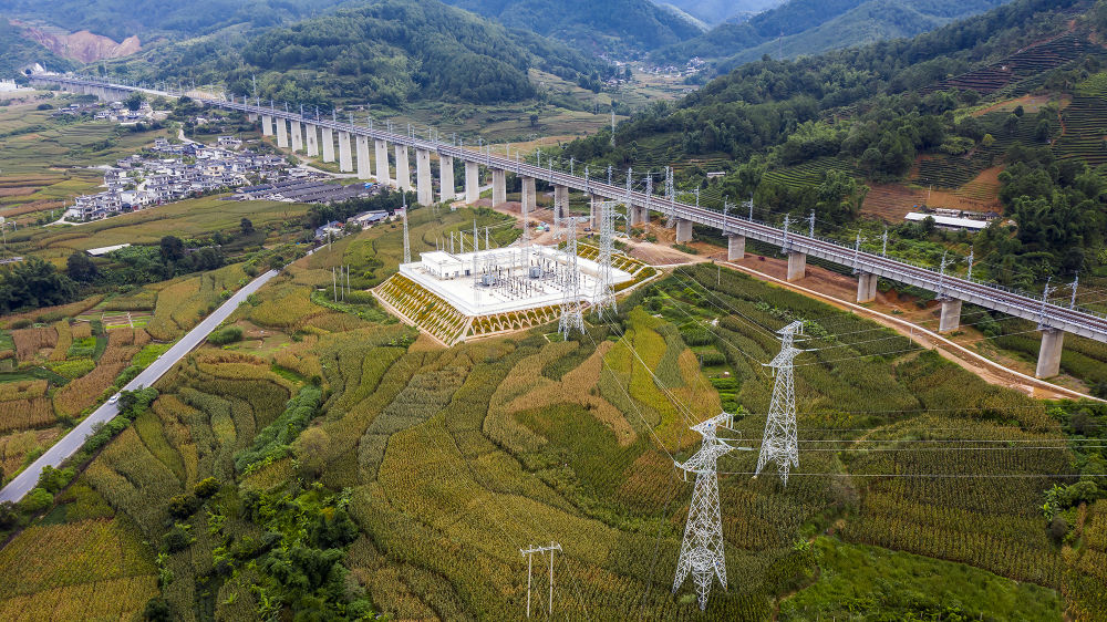 这是中老铁路国内段宁洱站的牵引变电所和输电线路(2021年9月6日摄,无人机照片)。2021年8月31日,中老铁路外部供电项目全部建成,达到投产送电条件,为中老铁路顺利开通运营奠定了基础。